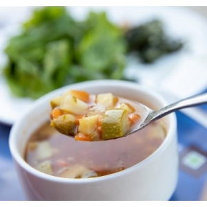 Potato, Zucchini, Carrot, Onion, Green Bean, Tomato, Leek, Celery, Butter, Salt, Pepper. - بطاطا، كوسى، جزر، بصل، لوبيا، بندورة، كرات، كرافس، زبدة، ملح، بهار.