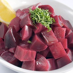 روكا، شمندر، بندورة، بصل، سماق، زيت زيتون، حامض.