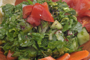 Tomato, Cucumber, Onion, Lemon, Mint, Garlic, Olive Oil, Salt. -