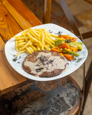 Eggs with Kawarma, Sausage or Meat بيض مع قاورما أو سجق أو لحمة